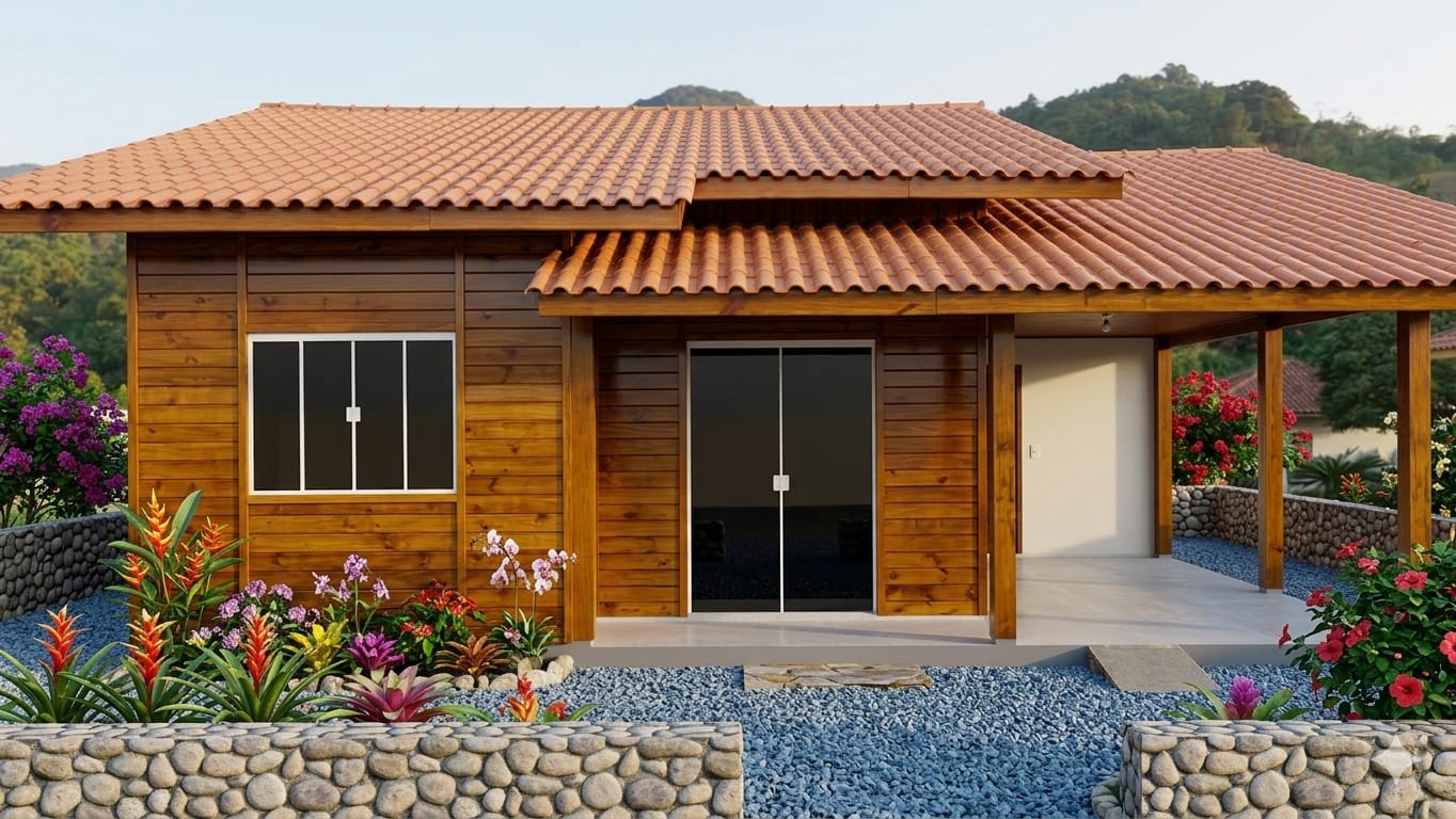 Modelo pensado para quem pretende construir uma casa mais básica com um precinho mais acessível. 1 ou 2 quartos é o ideal neste modelo.